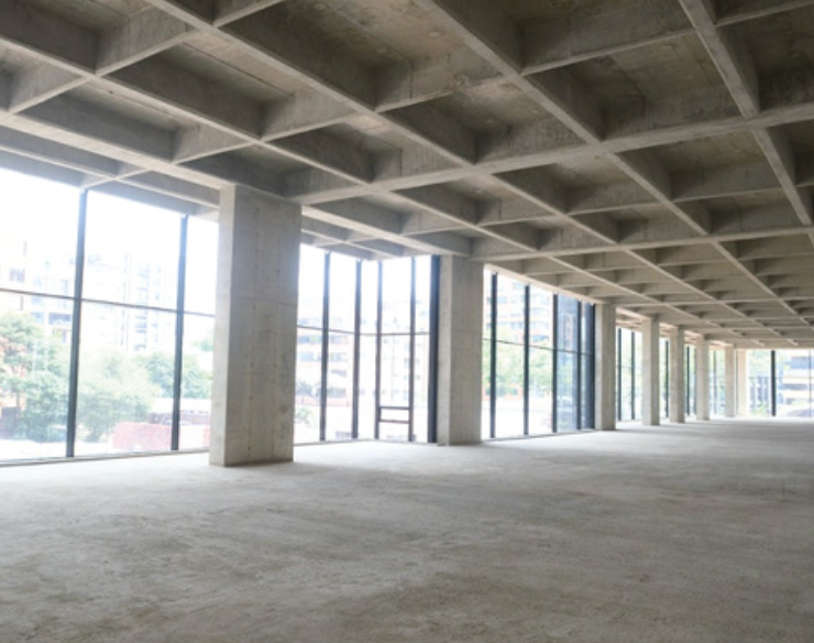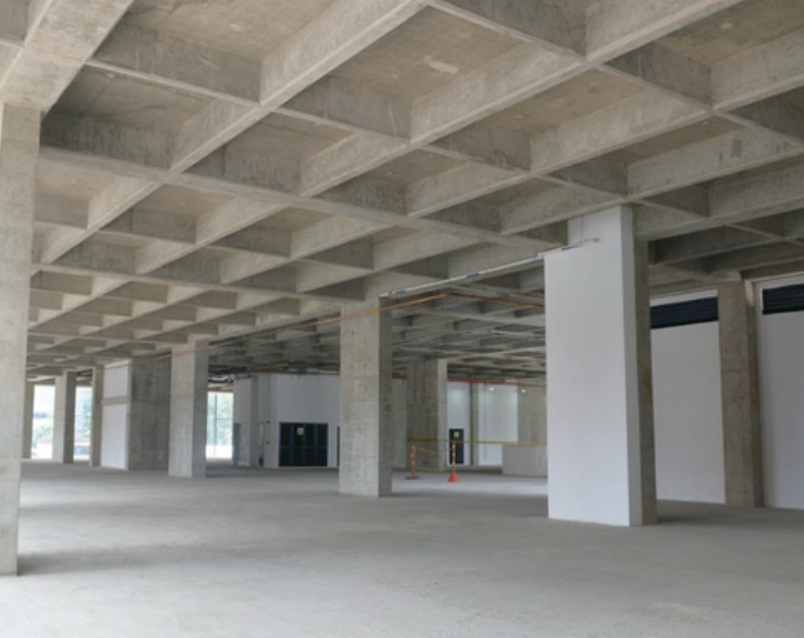 a la vista, sin afinado de piso, ni muros divisorios.